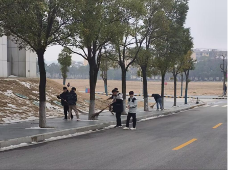 开学第一周,冰雪尚未消融,同学们对17栋教学楼周边人行道进行残雪清扫。天气寒冷,但大家干得热火朝天。各班分工明确,进展迅速,效果明显,还原了一条条干爽、清洁的人行道。
