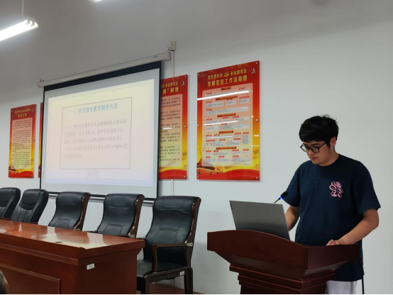 付亚子指出综合素质测评结果,是体现大学生综合素质的重要依据,也是评奖评优、推优入党的重要参考条件。希望各班在班主任的指导下,成立班级评定小组,做好以下四点要求:一是统一思想,做到高度重视;二是程序到位,做到公平公正;三是认真负责,做到及时有效;四是集思广益,做到日臻完善。