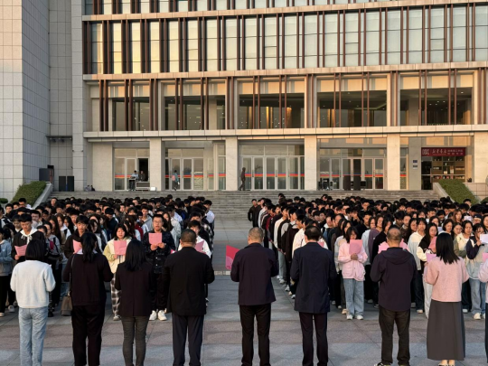 为深入推进学习贯彻习近平新时代中国特色社会主义思想,教育引导广大青年深刻理解把握时代责任和历史使命,进一步加强大学生爱国主义教育,培育大学生家国情怀,增强大学生文化自信,促进优良学风校风建设,11月11日7:30,永利皇宫官方网站于南院图书馆国旗广场组织展开第一次爱国朗读活动,党委学工部部长刘立刚;永利皇宫官方网站院长童耀南、党委副书记付亚子出席,全体辅导员、24级本科生研究生参加,本次活动由付亚子主持。