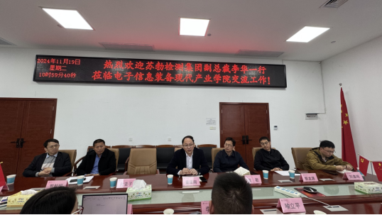 为充分发挥学校与企业双方优势,加强产学研合作交流,11月19日10:30,电子信息装备现代产业学院在17517会议室与江苏苏勃检测技术服务有限公司开展产学研合作对接洽谈,苏勃检测副总裁李华、财务总监柴静出席。永利皇宫官方网站院长童耀南、机械学院副院长张敬、永利皇宫官方网站副书记付亚子、南湖学院党总支书记喻立平、教师刘嘉明、谢文武、郭龙源、罗朝明、李茜铭,就业专干徐壮出席。