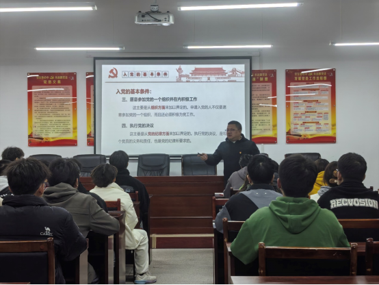 培训中,付亚子从入党的基本条件、端正入党动机、以实际行动争取早日加入党组织这三个方面进行阐述。他首先向学员们介绍了入党的基本条件,接着深入讲解了入党动机的内涵,要求大家牢记党的根本宗旨,并指导同学们如何树立正确的入党动机。在讲课过程中,付亚子老师引用了众多英雄先辈的感人事迹,这些故事深深触动了在场每一位学员的心灵,激发了我们对党的无限敬仰和对共产主义事业的坚定信仰。