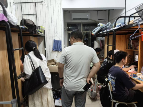 付亚子、王艳芬带队,学生党支部网格员队伍分组前往分管寝室检查。检查中,老师们与学生亲切交流,询问困难,对问题提出整改要求;学生党支部网格员队伍仔细排查,提醒同学们在假期中要增强安全意识,强调相关注意事项。