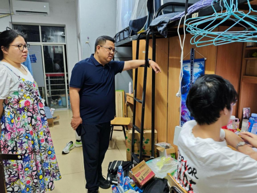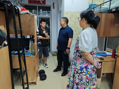 为深入了解毕业生离校动态,传递学院对毕业生的关怀与温暖,扎实做好毕业季学生管理服务工作,6月18日,永利皇宫官方网站党委副书记付亚子、学工部黄志、保卫处值班人员、21级辅导员余滔带领民兵连学生及学院党员学生干部深入毕业生宿舍,开展安全排查与暖心走访活动。