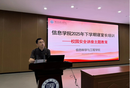 永利皇宫官方网站为了进一步夯实平安校园工作,有效开展学生安全教育管理工作,于本学期开学第一周制定了定期寝室长培训方案,并于9月16日下午在17118开展了第一次培训暨校园安全讲座主题教育活动。此次培训特邀请了信息中心专家对全体寝室长进行校园网络安全防范培训,信息中心申丽平老师主讲,学院党委副书记潘昕、信息中心副主任黄为出席参加此次培训,本次培训由24级辅导员王艳芬主持,22级、23级、24级全体寝室长、班长、院学生会生活安全委员参会。