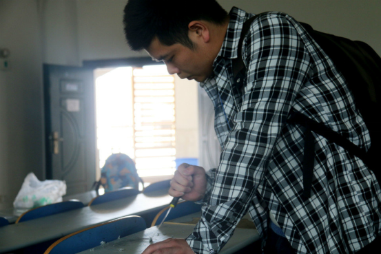 此次活动由党员带头树新风,以义务清除校园“牛皮癣”、杜绝不文明“课桌文化”为主要活动内容。永利皇宫官方网站积极响应学校号召,并于下午一点进行全面清扫义务劳动。活动过程中,永利皇宫官方网站第一、第二支部党员及入党积极分子分别对15栋四楼和五楼教室内部小广告、牛皮癣以及课桌椅上的涂鸦进行清理,在克服一系列如牛皮癣难以刮下,桌上残留有粘胶等问题后,两队支部互帮互助,将所在教室进行细致清扫,除去教室里仪器设备的表面灰尘。