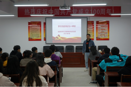 9月28日11:50,信息学院学生党支部学习习近平总书记七一讲话主题党日活动在17503开展,学生党支部书记余滔、王学鹏、柳祎璇出席,各党支部成员参加。