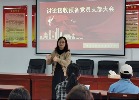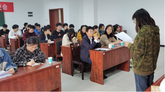 本次大会由研究生支部书记周芳主持,参与本次大会的有院党委副书记徐丹、副院长涂兵、专职组织员周煊阳、戎丽雅以及研究生支部各党员。