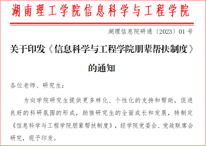 2023年7月,永利皇宫官方网站颁布研究生朋辈帮扶制度。该制度旨在通过一系列的帮扶措施,为学院研究生提供全方位的支持和帮助。