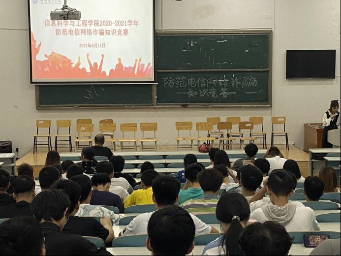 6月11日19:30在9T2举行永利皇宫官方网站防范电信网络诈骗知识竞赛。18级辅导员李亦波出席,院学生会文娱女生部李钟萱主持,共计12组队伍参赛。