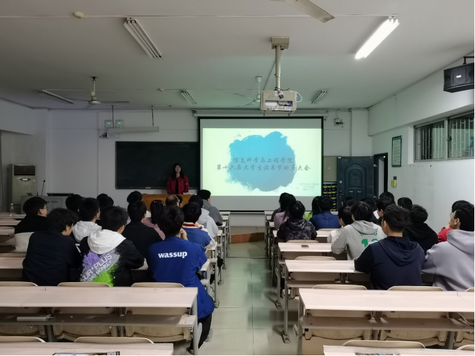 3月22日19:00,信息学院第十六届大学生读书节动员大会在5309举行。18级辅导员李亦波、19级辅导员王勤出席,会议由院学习纪检部王璐主持,学院全体学委参加。