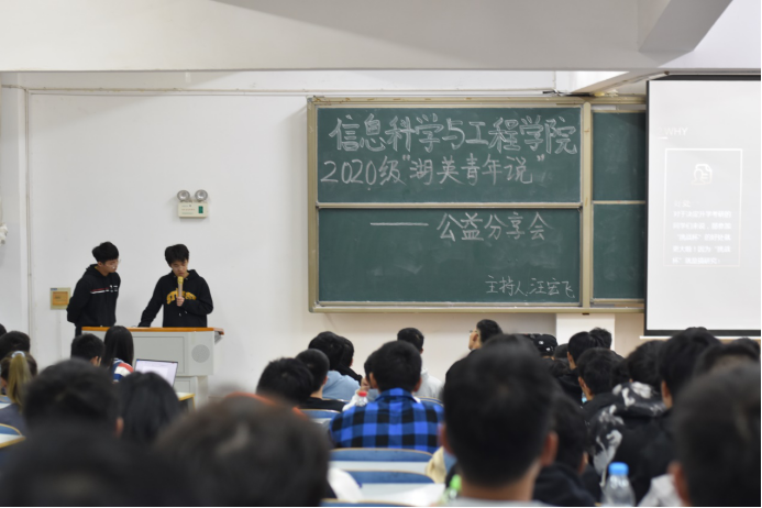 10月25日19:00,永利皇宫官方网站2020级“湖英青年说”公益分享会在15208顺利举行,本次活动由汪宏飞主持,王政、沈亚辉、赵卓主讲, 20级新生参加。