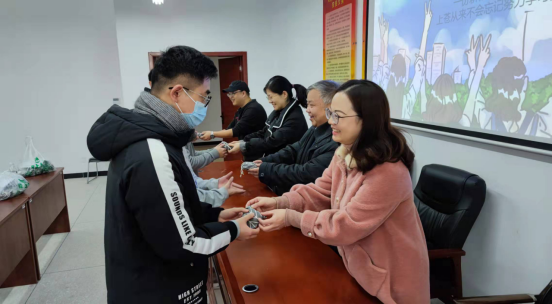 甘向阳、徐丹为同学们加油鼓劲,并叮嘱同学们在考前冲击的最后阶段要注意规律作息,把身体和心理状态调整到最佳,寄语同学们坚定信心、沉着应试、出色发挥、成功上岸,并将带有美好寓意的棒棒糖和橙子等暖心礼物分发给在场同学。