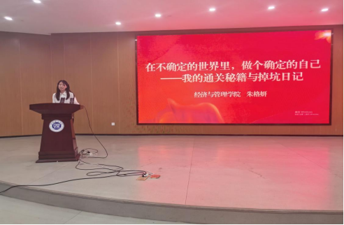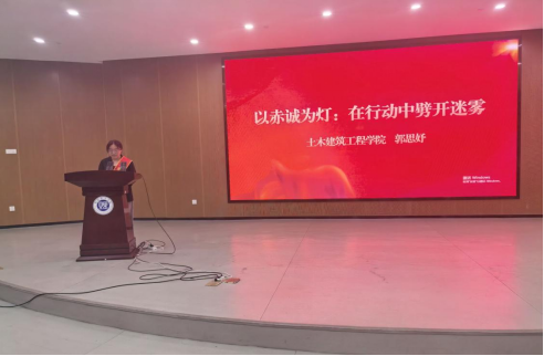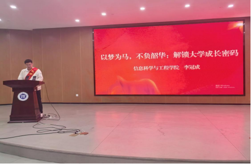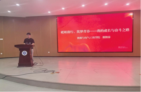 四位优秀学子依次登台分享成长经验。能电学院谢湘泰以"砥砺前行,筑梦青春"为题,讲述通过AI工具应用、科创竞赛实现专业突破的经历,强调"资源筛选+自主学习"双轮驱动的成长法则。经管学院朱格妍通过"通关秘籍与掉坑日记"的鲜活叙事,展现如何以专业为锚点,在学科竞赛中实现认知跃升,提出"知识应用、团队协作、坚持笃行"的成长三要素。土建学院郭思妤以"以赤诚为灯"为主题,分享历史建筑保护专业学习中的坚守与突破,结合支教经历诠释"专业价值与社会责任"的深度融合。永利皇宫官方网站李冠成通过"解锁大学成长密码"的实践指南,系统梳理目标管理、能力提升的进阶路径。