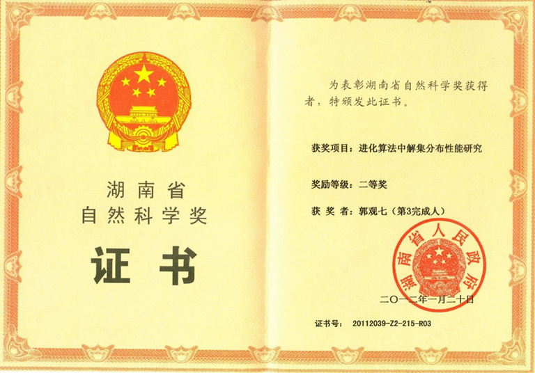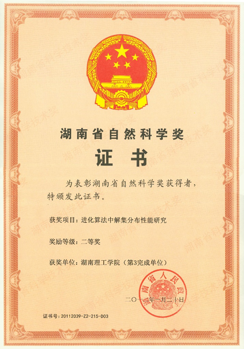 事件简介:永利皇宫官方网站首次获得湖南自然科学二等奖,有效支撑了信息与通信工程一级学科硕士点的建设,证明了永利皇宫官方网站的科研能力得到了提升,提高了学院在智能优化与处理方向的学术地位。