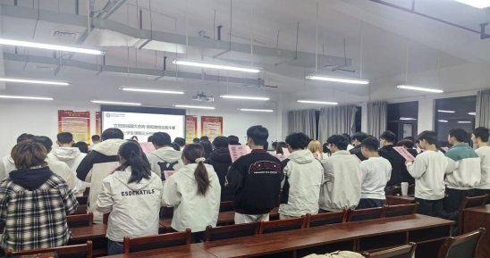 12月3日下午,“立报国强国大志向做挺膺担当奋斗者”大学生课前三分钟爱国朗读(第八季)最后一次朗读活动在17503教室举行。院党委书记、院长肖迎群,院党委副书记潘昕、副院长戴华、副院长蒋军强,及全体辅导员老师出席,24、25级学生代表共同参与,以集体朗诵《中华颂》的形式,为本次爱国朗读活动画上圆满句号,传承红色基因,厚植家国情怀。