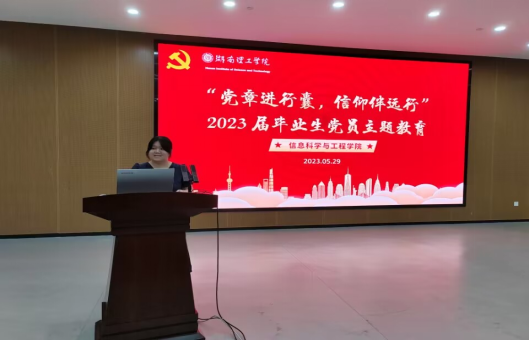 5月29日15:00,永利皇宫官方网站于17118开展"党章进行囊,信仰伴远行"2023届毕业生党员主题教育活动。院党委书记甘向阳、院党委副书记徐丹、专职组织员刘照馨、学生党支部书记王艳芬、余滔、王学鹏、王璇出席会议。永利皇宫官方网站全体预备党员、正式党员、入党积极分子以及优秀毕业生党员代表参加会议。活动由刘照馨主持。