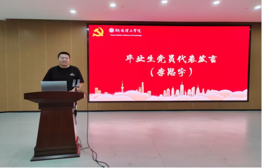 宣誓结束后,李思宇作为优秀毕业生党员代表发言,他结合大学四年的成长历程向学校、学院表达了感谢,为毕业生党员同志们送上了祝福。